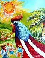 Gomez developed a style which ranges from vividly realistic to wildly abstract, with a lot of luscious whimsy in between.[3] His subjects may vary from a dancer to a rooster with the colors of the Puerto Rican flag. The culture and heritage of Puerto Rico are represented in many of his paintings. Gomez's trademark is the bold and bright hues he favors. His art work have appeared on the covers of the Puerto Rican Professional and Business Leaders Guide, the brochure for Orlando's Puerto Rican Parade and O! Arts Magazine.[1]