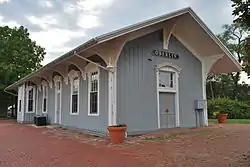 Oberlin's first railroad was built by the Toledo, Norwalk, and Cleveland Railroad, which opened its line through the village in late 1852.[4] Fifteen years later, the Lake Shore and Michigan Southern Railroad erected the present structure along its east-west line on Oberlin's southern side.[3] From its earliest years, the rail line was a highly significant component of village life: Oberlin College students and other travellers had previously relied on weather-dependent Lake Erie transportation routes, so the all-weather railroad line provided an immense boost to the college and to the community in general.[4] In 1914, the LS&MS became a part of the new New York Central Railroad,[5] but the new larger railroad only operated the depot for a few decades; by the 1970s, the depot sat silent and unused. Rather than demolishing the depot, locals chose to preserve it: the land surrounding it was converted into a park, and the depot itself was renovated in order to ready it for use as the local Head Start offices.[3]