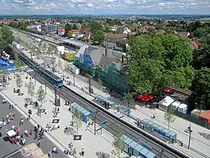 U-Bahn stop (bottom) and railway station (top) during Hessentag 2011