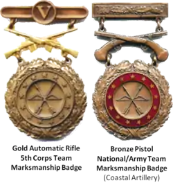 Army Marksmanship Prize Medals (multiple versions) Army Team Marksmanship Medals (1st version) Army Distinguished Aerial Gunner/Bomber Medals Army Team Marksmanship Medals (2nd version) Army Distinguished Automatic Rifleman Medal