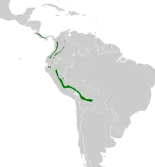 The ochre-breasted antpitta (Grallaricula flavirostris) is a species of bird placed in the family Grallariidae. It is found in Bolivia, Colombia, Costa Rica, Ecuador, Panama, and Peru. Its natural habitat is subtropical or tropical moist montane forests.
