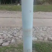 A pole at a park in Cheraw, South Carolina. The ring around the pole indicates the height of the Pee Dee River during the 2015 flood.