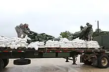 The South Carolina National Guard loading up sandbags for distribution across the state on October 3