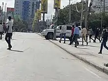 At 14:00, the first explosion struck the country's Education Ministry, near Zobe junction[6] and a school. The junction was the site of a deadlier bombing in October 2017.[6][7] The explosion was followed by a large column of smoke. A second explosion occurred minutes later when ambulances arrived at the site of the first explosion. The second explosion occurred during the busy lunchtime hours outside a restaurant. Both explosions shattered the windows of nearby buildings. Soon after the bombings, gunfire at the nearby Education Ministry was reported.[6][7][9]