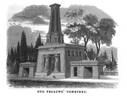 The Odd Fellows Cemetery was located a short distance from Old Glenwood Cemetery and adjoined the smaller United American Mechanics' Cemetery.[3]