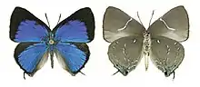- ↑ Faynel, C.; Busby, R. C.; Robbins, R. (2012). "Review of the species level taxonomy of the neotropical butterfly genus Oenomaus (Lycaenidae, Theclinae, Eumaeini)". ZooKeys (222): 11–45. doi:10.3897/zookeys.222.3375. PMC 3459029. PMID 23129985.