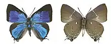 - ↑ Faynel, C.; Busby, R. C.; Robbins, R. (2012). "Review of the species level taxonomy of the neotropical butterfly genus Oenomaus (Lycaenidae, Theclinae, Eumaeini)". ZooKeys (222): 11–45. Bibcode:2012ZooK..222...11F. doi:10.3897/zookeys.222.3375. PMC 3459029. PMID 23129985.