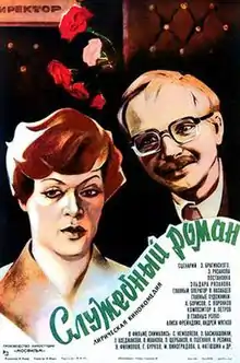 Office Romance (Russian: Служебный роман, romanized: Sluzhebny roman) is a 1977 Soviet comedy film directed by Eldar Ryazanov. The film's plot is based on the stageplay Co-workers (Сослуживцы) written by Ryazanov and Emil Braginsky, and tells the story of Ludmila Kalugina, head of a statistical bureau, and her subordinate, economist Anatoly Novoseltsev, who come from mutual aversion to love.