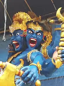 Ogoh-ogoh are statues built for the Ngrupuk parade, which takes place on the eve of Nyepi day in Bali, Indonesia. Ogoh-ogoh normally take the form of mythological beings, mostly demons. As with many creative endeavours based on Balinese Hinduism, the creation of Ogoh-ogoh represents spiritual aims inspired by Hindu philosophy.[1][2]