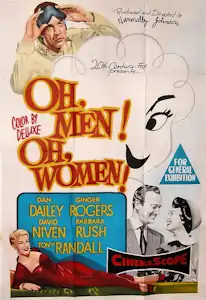 Oh, Men! Oh, Women! is a 1957 American comedy film written, produced and directed by Nunnally Johnson, based on the play of the same name by Edward Chodorov. It stars Ginger Rogers, Dan Dailey and David Niven.[2] It was the feature film debut of Tony Randall, who had played Dailey's role in the Broadway version, albeit as part of the replacement cast.