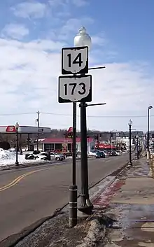 SR 173 was commissioned in 1923, originally routed from SR 19. northeast of Louisville, to SR 19, south of Beloit.[2][3] In 1927 the route was rerouted onto the route of previous SR 19, through Alliance.[4][5] The route was extended west to its current western terminus, at SR 44, in 1937.[6][7] Between 1969 and 1971, SR 173 was rerouted concurrent with US 62 from west of Alliance to Salem.[8][9] In 1976 US 62 in Salem was rerouted to bypass the city and SR 173 remained on the old route of US 62.[10][11]