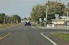 The SR 366 designation was assigned in 1934. The original routing of SR 366 consisted only of the current stretch of the highway between what was originally designated SR 32 (now US 33) and what was then designated as SR 69 (now SR 235) north of Lakeview. At that time, the remainder of the current SR 366 consisted of SR 69 and US 33.[2][3] By 1961, a new two-lane alignment of US 33 was established through Lakeview, Russells Point and to the southeast. Consequently, SR 366 took on the shape that it has today by being extended via a concurrency with SR 69 south into Lakeview, and the former routing of US 33 along the south shore of Indian Lake from that point east to its current eastern terminus at SR 117.[5][6] Later in 1979, SR 368 was truncated from SR 117 to SR 366, leaving SR 366 the only route between those two highways.[7][8]