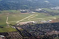 Ohio State University Airport (IATA: OSU, ICAO: KOSU, FAA LID: OSU) is a public airport six miles (10 km) northwest of downtown Columbus, in Franklin County, Ohio, United States.[1] It is owned and operated by Ohio State University in Columbus. It is also known as the OSU Don Scott Airport, named after Donald E. Scott, an OSU alumnus who died during his training as a pilot in the United Kingdom during World War II. The airport's main entrance is located on Case Road, and is easily accessible from OH-315 and Interstate 270.