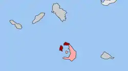 Oia or Ia (Greek: Οία, pronounced [ˈia][2]) is a small village and former community in the South Aegean on the islands of Thira (Santorini) and Therasia, in the Cyclades, Greece. Since the 2011 local government reform it has been part of the municipality of Santorini, of which it is a municipal unit.[3][4] It covers the whole island of Therasia and the northwesternmost part of Santorini, which it shares with the municipal unit of Santorini. The main street is named Nikolaou Nomikou. The population was 1,545 inhabitants at the 2011 census, and the land area is 19.449 km2.[1][5]