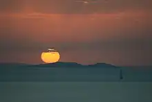 One of the most popular attractions in the town is sunset viewing. It is a special event every evening in Oia from the Sunset Seranade point. At this time the town is crowded with people to watch the spectacle, when the white houses and the caldera catch all the colours of the setting sun for a few seconds.[6]