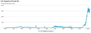 - ↑ "How much petroleum does the United States import and export? - Frequently Asked Questions (FAQs) - U.S. Energy Information Administration (EIA)". www.eia.gov. Retrieved August 12, 2020.