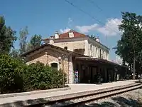 The Oinoi–Chalcis railway is an 21.69-kilometre-long (13.48 mi) railway line that connects Oinoi (West Attica) with Chalcis, capital of Euboea in Greece.[2] It is one of the most important railway lines in Central Greece. Its southern terminus is Oinoi, where there are connections to Athens and Thessaloniki.