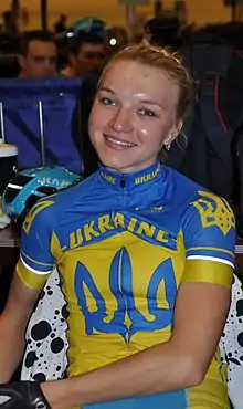 Oksana Kliachina (born 11 September 1997) is a Ukrainian road and track cyclist, who currently rides for UCI Women's Team Lviv Cycling Team,[1] and represents Ukraine at international competitions. She competed at the 2015 UEC European Track Championships in the team pursuit event and at the 2016 UEC European Track Championships in the team pursuit event.[2]