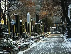 Olšany Cemeteries (Czech: Olšanské hřbitovy, German: Wolschaner Friedhof) is the largest graveyard in Prague, Czech Republic, once laid out for as many as two million burials. The graveyard is particularly noted for its many remarkable Art Nouveau monuments.[1]