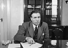 During Meisdalshagen's time the lines between various parts of government were somewhat blurred. When the state budget was presented by the cabinet, and subsequently treated by the standing committees of the Parliament, committee members would contact the Ministry of Finance directly to ask whether a proposed budgetary change was feasible (after Meisdalshagen's resignation this practice was altered, in that the contact was initiated by the Labour Party committee fraction, not by the committee as a whole).[24] Meisdalshagen also became known for nontraditional arrangements when it came to the Ministry's bureaucrats: assistant secretary Egil Lothe, who had a "very good relationship" with Meisdalshagen, doubled as assistant secretary and State Secretary from 1948 until Meisdalshagen's resignation in 1951.[25] Such a double role, where a person was both bureaucrat and politician at the same time, was very uncommon, probably unique.[26] Lothe was not formally appointed, either, and thus does not appear on historical lists of state secretaries.[27][28] According to Einar Lie, there was no clear division of tasks between Meisdalshagen and Lothe when it came to the Ministry's daily work.[27] In addition to Lothe, the consultant Karl Trasti, another friend of Meisdalshagen, had influence in this period, especially in budgetary questions.[29]