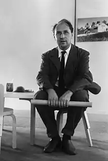Olavi Hänninen's design projects ranged from furniture to trams and church silverware, including total interior designs for many public facilities.[4] His modernist designs also included tables and chairs, and he was well recognized for his work on the Palace Hotel interiors together with Antti Nurmesniemi and Olli Borg.[5] Hänninen designed a renowned plastic chair with metal structure for the hotel's café.[6] In the 1970s, his designs included the new Valmet Nr I trams for Helsinki City Transport.[3]