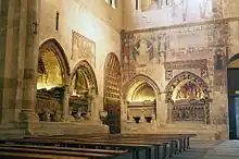 Sepulchers in the interior, photo dated 1880-1926. Memòria Digital de Catalunya.