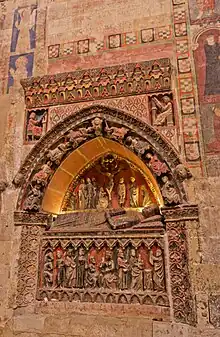 The Cathedral of Santa María (Spanish: Catedral Vieja de Santa María), known as the Old Cathedral, is one of the two cathedrals in Salamanca, Castile and León, Spain. Founded by Bishop Jerome of Périgord, its construction began in the first third of the 12th century and was finished at the end of the 14th century, in Romanesque and Gothic style. It was finished thanks to the impulse given to the works by Bishop Alfonso Barasaque. It is dedicated to Saint Mary of the See (Santa María de la Sede).