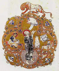 The so-called "fortune-telling books" (also "divinatory books") can probably also be attributed to cosmological works, which are currently not officially assigned to any of the genres of Kievan Rus'.[20] Fortune-telling books (Volkhovnik, Gromnik, Kolyadnik, Trepetnik, Enchanter, etc.) were mainly distributed secretly: they were copied, sewn into other books, and passed on by inheritance. Officially, the distribution of such literature was persecuted by the church; lists of forbidden (so-called renounced) books of Kievan Rus' were compiled, in which divinatory literature was equated with apocrypha.[21]