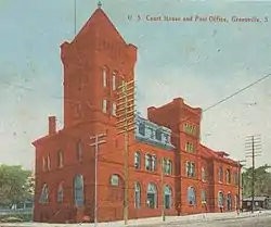 Old Greenville City Hall is a former building in Greenville, South Carolina, originally built as the U.S. Courthouse and Post Office in 1889 on the corner of Main and Broad Streets. Transferred to the city of Greenville in 1938, it served as the Greenville city hall. It was listed in the National Register of Historic Places on August 19, 1971,[2][3] and was removed in 1973 after its demolition.[1][3]