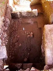 In 2010, human remains were accidentally unearthed during the landscaping activities of the Club Balai Isabel Resort, which was brought to the attention of the National Museum of the Philippines.[1] The initial assessment of the archaeologists from the National Museum on the site prompted them to conduct an archaeological investigation. In 2011 systematic excavations were conducted within the ruins around the area where the human bones have been found and beside one of the walls. The excavations revealed evidences of major wall collapses on the upper stratigraphic levels of archaeological trenches, which occurred around 19th to early 20th century. On the lower layers of the trenches, articulated human burials and scatters of fragmented human bones have been recovered, suggesting the reuse of the church ruins as a cemetery, sometime after the 1754 eruption. Adobe structures and the stony foundation of the walls were also exposed during the excavation, revealing more of the masonry of the church ruins.[2]