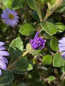 Olearia tomentosa, commonly known as the toothed daisy-bush,[2] is a species of flowering plant in the family Asteraceae and is endemic to south-eastern continental Australia. It is a spreading shrub with egg-shaped leaves, the edges toothed or lobed, and blue or white and yellow, daisy-like inflorescences.