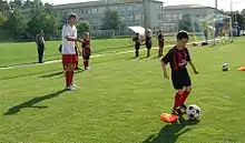 Oleg Starynskyi coaching kids during AC Milan junior camp in Kyiv