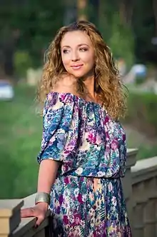 Olena Oleksiyivna Karpenko (born September 16, 1981 in Kyiv, Ukraine) is a Ukrainian singer, composer, and poet with the stage-name Solomia. Olena composes in Ukrainian, English and Russian. She writes and performs jazz, blues, rock, pop, classics and world in Ukraine and abroad.