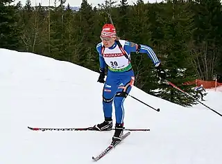 Olga Alekseyevna Zaitseva (Russian: Ольга Алексеевна Зайцева; born 16 May 1978) is a former Russian biathlete. She began her career in 1994. After not competing in the 2014–15 season, Zaitseva announced her retirement on 24 January 2015.[2] Shortly afterwards she announced that she had been appointed as caretaker head coach of the Russian biathlon team.[3]