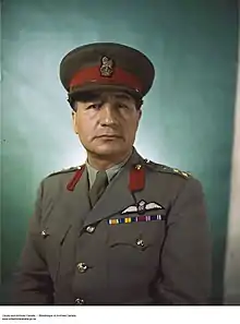 Oliver Milton Martin VD (1893-1957) was a member of the Kanien'kehá:ka nation from the Six Nations Grand River Reserve,[1] Martin served in the First and Second World Wars, gaining the rank of brigadier and was the highest ranking First Nations person of the Second World War.[2] After leaving the military he was a school teacher, principal and provincial magistrate.[1] Martin was the first Indigenous person to be appointed a provincial magistrate in Ontario.[3] The Royal Canadian Legion Branch #345 in Toronto is named in his honour.[3]