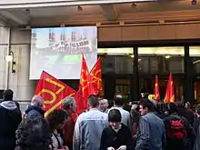 This led, in June 2008, to the launching of the New Anticapitalist Party (Nouveau parti anticapitaliste, NPA), intended to unify the parties and movements of the far left.[9] The party aims to field its first electoral candidates at the 2009 EU parliamentary elections.[10] Whilst plans were being put in place for the formation of this party, Besancenot was able to capitalise on the infighting occurring in the PS in the summer of 2008, as its members prepared to convene at La Rochelle for their annual party leadership contest. His popularity continued to increase, as he remonstrated the PS for focusing its attention on him, and not the incumbent president, Sarkozy. Besancenot told French TV, a medium in which he found himself in greater demand, that, "It's up to the population to get there [force a revolution] one way or another"; he also told a LCR conference that the left had been failing in its opposition.[10] One poll showed Besancenot's approval rating to be at 47%, far exceeding two of the main candidates for the PS leadership, Royal (35%) and François Hollande (31%). It was suggested in some media that, were Besancenot and the NPA to convert their popularity into votes (gaining up to a 7 or 8 per cent share), a splintering of the left-wing in France between Marxists and pro-marketeers, similar to that which occurred at the 2002 presidential elections, could happen.[11][12][13]