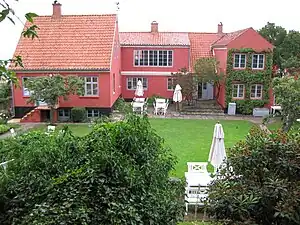 Oluf Høst (18 March 1884 – 14 May 1966) was a Danish Expressionist painter, the only member of the Bornholm school who was a native Bornholmer. Although he studied in Copenhagen, he returned to the Danish island of Bornholm in 1929 where he remained with his family for the rest of his life. Bognemark, a little farmhouse near Gudhjem, was one of Høst's favourite motifs. From 1935 on, he painted the farm some 200 times under varying conditions at different times of the year, often reflecting his particular mood at the time.[1] His home in Gudhjem, built from two fishermen's cottages with a rocky garden in the rear, is named "Norresân" after the nearby harbour, Nørresand Havn, where he painted many of his works.[2][3]
