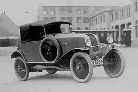 ![]() The Omega during the demonstration on 18th October 1923 with the bonnet and canvas roof on. | |