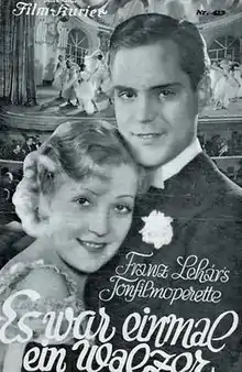 Once There Was a Waltz (German: Es war einmal ein Walzer) is a 1932 German operetta film directed by Victor Janson and starring Mártha Eggerth, Rolf von Goth and Paul Hörbiger. It was shot at the Tempelhof Studios in Berlin with sets designed by the art director Jacek Rotmil. It premiered in Berlin on 14 April 1932. The film was remade in Britain as Where Is This Lady?, released the same year.[1]