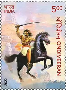 India Post issued a commemorative postage stamp of denomination ₹5 featuring Ondiveeran on the 28th of August 2020.
