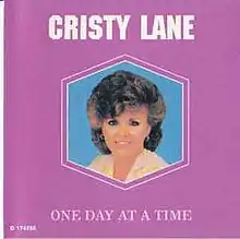"One Day at a Time" became best known among country fans when recorded by American country gospel singer Cristy Lane. Lane had started enjoying mainstream success in the late 1970s through the release of several secular hits, including "Let Me Down Easy" and "Simple Little Words." In 1979, Lane recorded the song after it became a No. 1 hit in the United Kingdom by Lena Martell. At first, United Artists Records balked at releasing the song, despite its previous track record of success, but Lane's husband-manager, Lee Stoller, predicted the song would be successful, and UA relented. The song was released in the late winter of 1980, and by the end of the spring, the song was No. 1 on the Billboard Hot Country Singles chart.[4]
