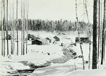 Construction camps such as this were built along the 247-kilometre (153 mi) gap between Geraldton and Hearst. Several housed prisoners who were put to work on clearing the route of the highway.