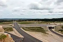 In August 2006, work began on the Sundridge–South River bypass of Highway 11, as part of the four-laning of that route between Huntsville and North Bay.[15] The work involved constructing interchanges and a new alignment of Highway 11 west of the existing highway, and was completed in September 2011. Consequently, the former 16.2 km (10.1 mi) alignment through Sundridge and South River was redesignated as part of Highway 124.[16][17]