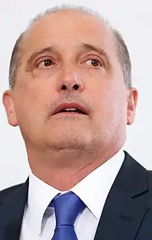 Onyx Dornelles Lorenzoni (born 3 October 1954) is a Brazilian politician, businessman, and veterinarian. A member of the Liberal Party (PL), he served as a federal deputy from Rio Grande do Sul for five terms. After the 2018 Brazilian general election, the president-elect Jair Bolsonaro invited Lorenzoni to be his Chief of Staff.[1] He was also designated leader of the transition team.[2]