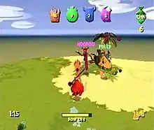 The storyline is that Ooga Booga is a volcano goddess that creates islands, and has leaders of tribes, the Kahunas, that battle for her favour.[3] It has a distinct Polynesian style and tone, and has many multiplayer islands and characters which can be unlocked. It was one of the last online games for the Dreamcast. There are four basic Kahunas that the player can use: Hottie (balanced), Fatty (strong), Twitchy (fast), and Hoodoo (spells).[4] There are other unlockable Kahunas based on the main four. Some of them include Death, a floating skeleton, Abe (former U.S. President Abraham Lincoln), Superguy (superhero), Joseph (a caveman who says "ooga booga") and Dwarf (a dwarf).