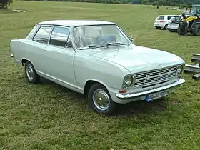 The Opel Kadett B is a car that was launched by Opel at the Frankfurt Motor Show in late summer 1965.[2][3] The Kadett B was larger all-round than the Kadett A: 5% longer both overall and in terms of the wheelbase, 7% wider and 9% heavier (unladen weight), albeit 10 mm (0.39 in) lower in basic standard "Limousine" (sedan/saloon) form.[4] Production ended in July 1973, with the successor model introduced a month later following the summer shut-down, in August. Unlike its predecessor, it had no relationship with the Vauxhall Viva, which had moved to its own platform for its corresponding second generation.
