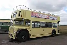 The first buses built new as open top vehicles arrived in 1961. They were built on Bristol Lodekka chassis with 60-seat ECW convertible bodies – that is with detachable roofs so that they could operate as conventional buses during the winter. Most Lodekkas in the fleet were the FLF type, but these were the shorter FS model fitted with 6-cylinder Gardner engines.[7][8] Two more convertible Lodekkas were purchased secondhand from Crosville Motor Services company. These were the LD model fitted with 6-cylinder Bristol engines, two years older than the FSs. They had 60-seat ECW bodies with a conductor-operated door, which made then a more attractive proposition for winter services than the FSs with their open platform. A final Lodekka joined the fleet in 1976, this time an FLF. Its 70-seat body had its roof removed following a collision with a low bridge in Bristol. Like the LDs, it was fitted with a 6-cylnder Bristol engine but had a power-operated door at the front instead of the rear entrances on the earlier buses.[7]