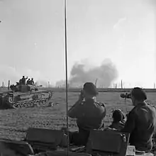 During the North-west Europe Campaign (6 June 1944 – 8 May 1945), British specialist tanks were held in the 79th Armoured Division (Major-General Percy Hobart) and attached to other units for particular operations.[30][lower-alpha 4] For Astonia, the 79th Armoured Division provided the 49th Division with the 222nd Assault Squadron RE (AVRE), two Crab squadrons of the 22nd Dragoons and a Crocodile squadron of the 141st Regiment Royal Armoured Corps (141 RAC). The division also had the 34th Armoured Brigade and the 1st Canadian Armoured Carrier Regiment with 44 Kangaroos under command. In the I Corps plan, phase I had the 49th Division breaking through on the northern front capture strongpoints to the south and cross the Fontaine. In phase IIa the Highlanders would break through on the right and in IIb the 49th Division was to capture the southern plateau. In phase II the Highlanders would take the ground around Octeville and the heights north of Le Havre and in phase IV, all forces were ruthlessly to exploit opportunities to capture the town.[31]
