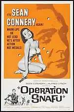 The film was not released in the United States until 21 May 1965, retitled "Operation Snafu"[2] and later "Operation War Head"[2] by the US distributor American International Pictures. The only purpose of the US release was to capitalise on the popularity of Sean Connery, who by then had become world-famous as James Bond in Dr No, From Russia with Love and Goldfinger. The titles, as well as the advertising campaign, downplayed the comedic aspects of the film as well as Connery's original second-billing. During a 1961 trip to England Alan King made a brief appearance in the film and forgot about it until the American release gave him second billing.[3] He and Connery would work together again on The Anderson Tapes.