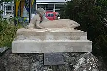 A stone statue of the dolphin playing with a child by Russell Clark was erected in Opononi in 1960.[9] Following vandalism this was replaced by a bronze casting in 2013, with the restored original put on display at the Hokianga Historical Society's Museum at Omapere.[10][11][12]